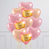 Half Dozen Red Foil Hearts held by our gorgeous Teddy Bear, arriving inflated straight to your loved ones door - use to decorate a party, send as a gift to that special someone or turn any occasion into a celebration!