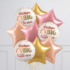 Our foil supershape balloons range from 22-39 inches, our coordinating foil balloons range from 18-20 inches.